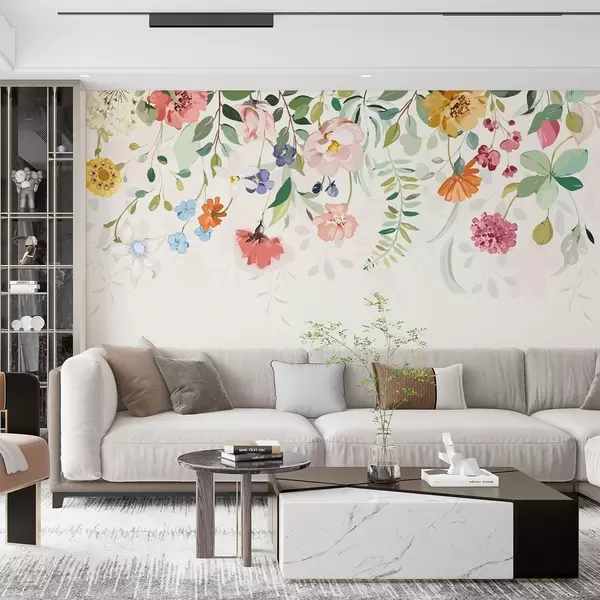 Zidne murale svijetlo šareno cvijeće i lišće na vrhu br. w02201