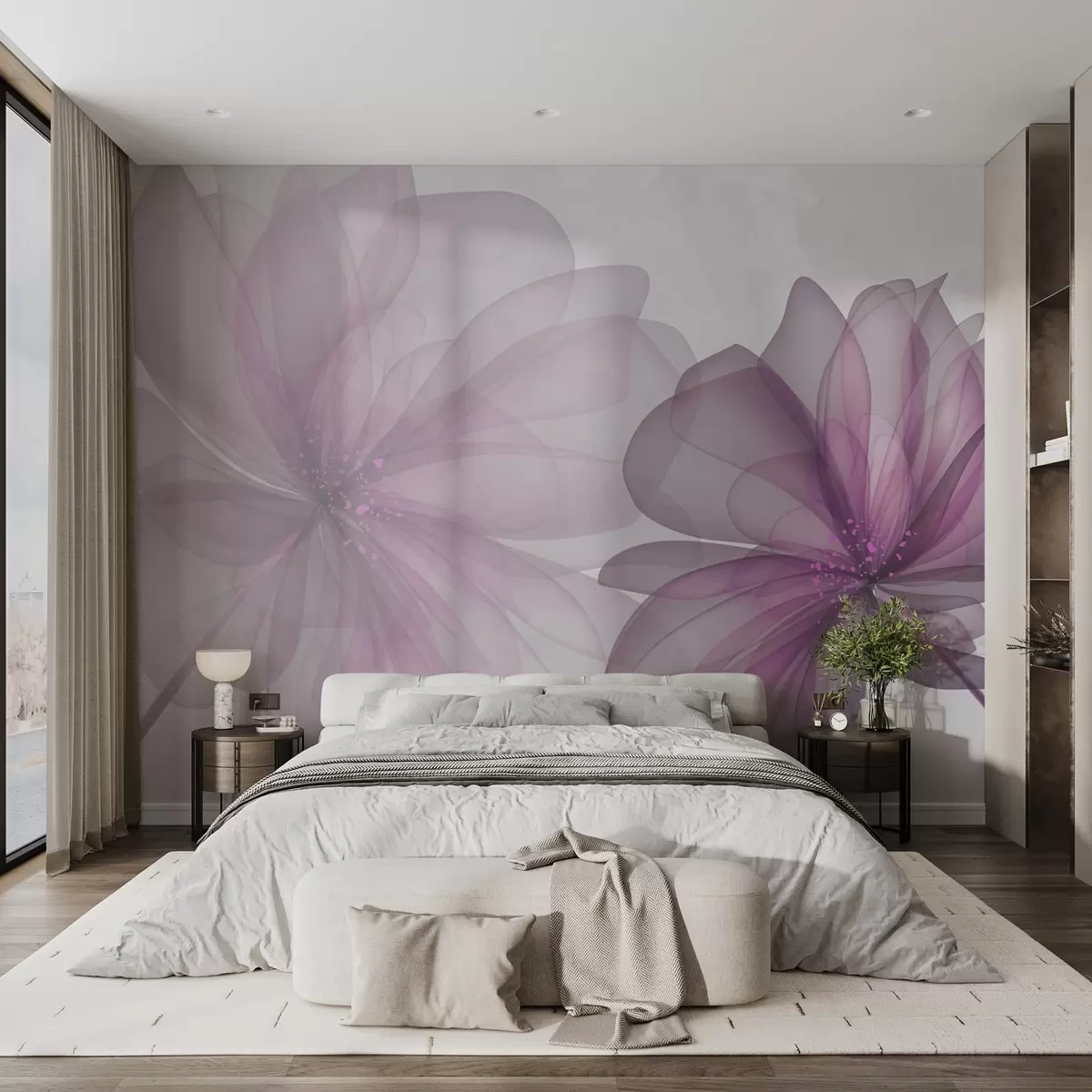 Zidne murale prozirni veliki ružičasti cvjetovi br. w02205