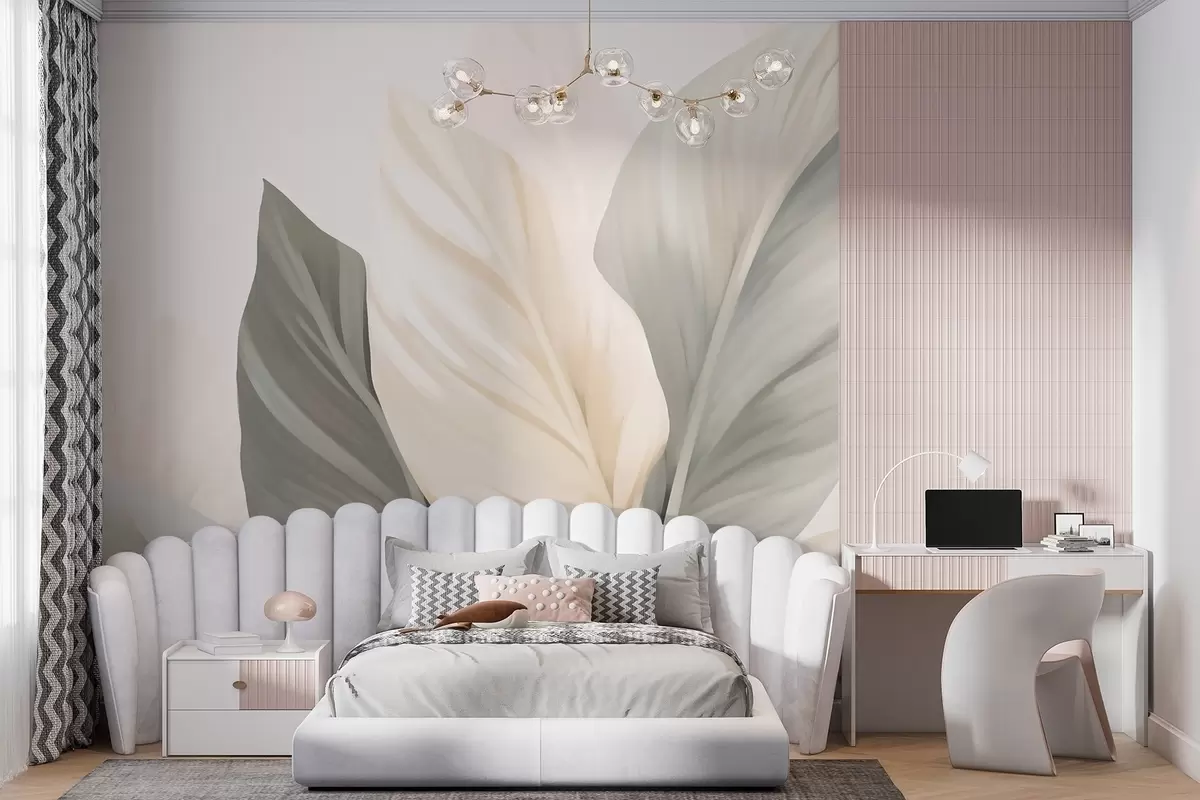 Zidne murale Bež i sivo lišće na svijetloj pozadini br. w02217