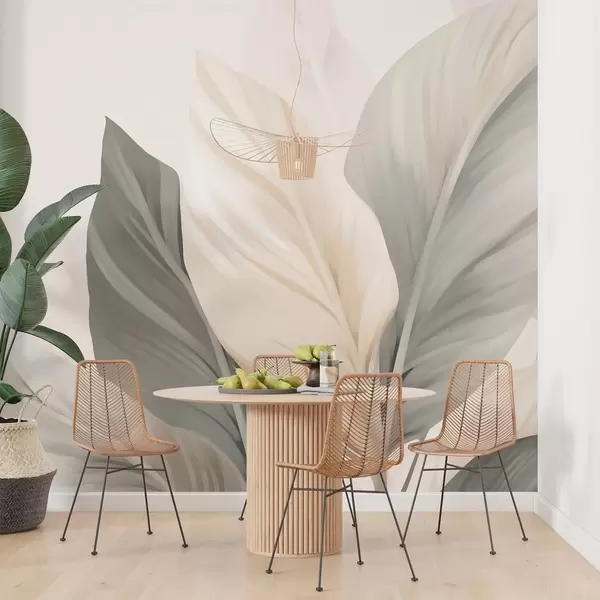 zidne murale Bež i sivo lišće na svijetloj pozadini w02217