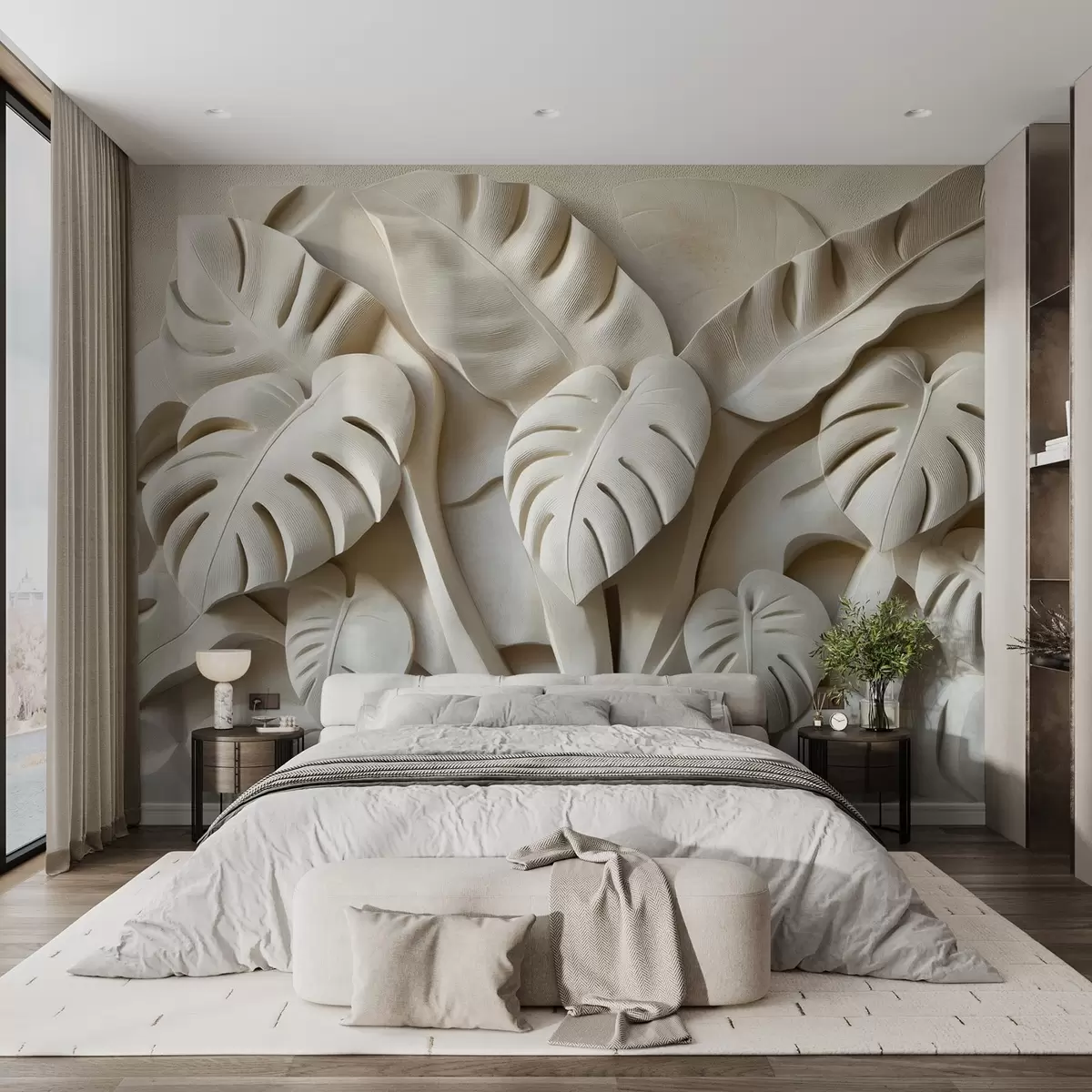 Zidne murale Bareljef velikog lišća monstere br. w02312