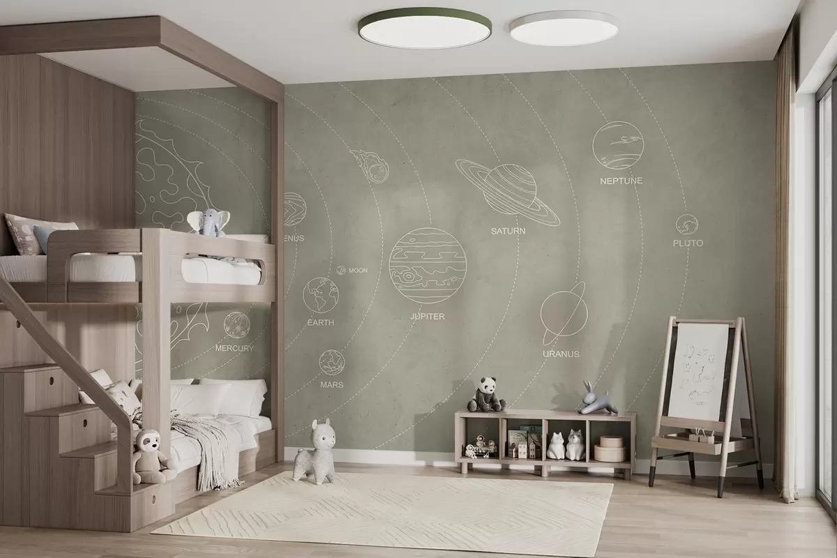 Zidne murale Solarni sustav u minimalističkom stilu na hladnoj bež teksturiranoj pozadini br. w02344