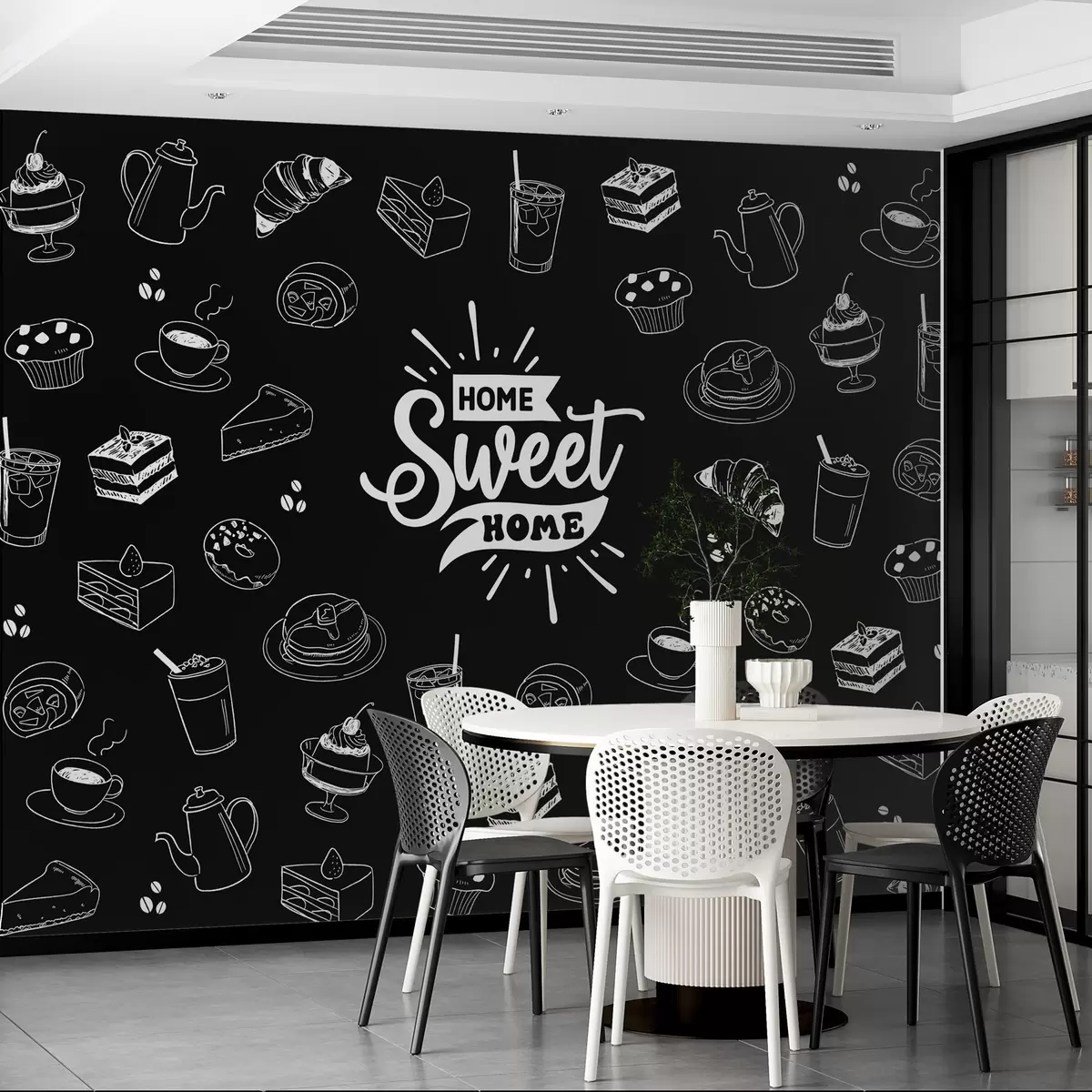 Zidne murale crna tapeta za kuhinju s bijelim uzorcima br. w02349