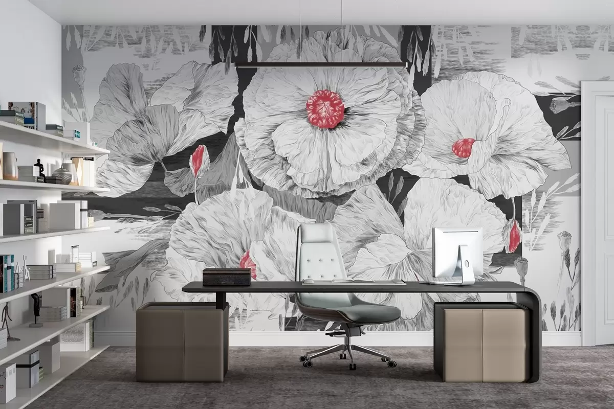 Zidne murale Monokromatski cvjetovi u mekoj eleganciji br. w02477