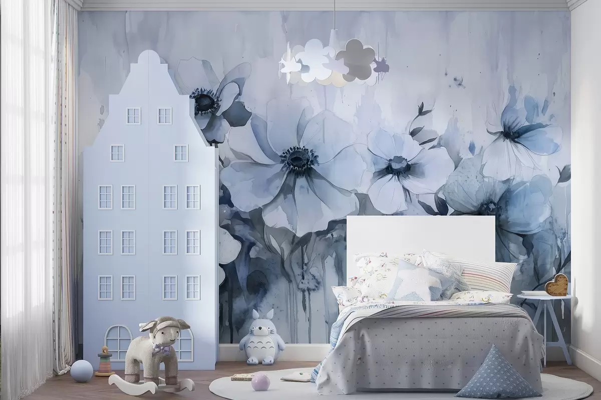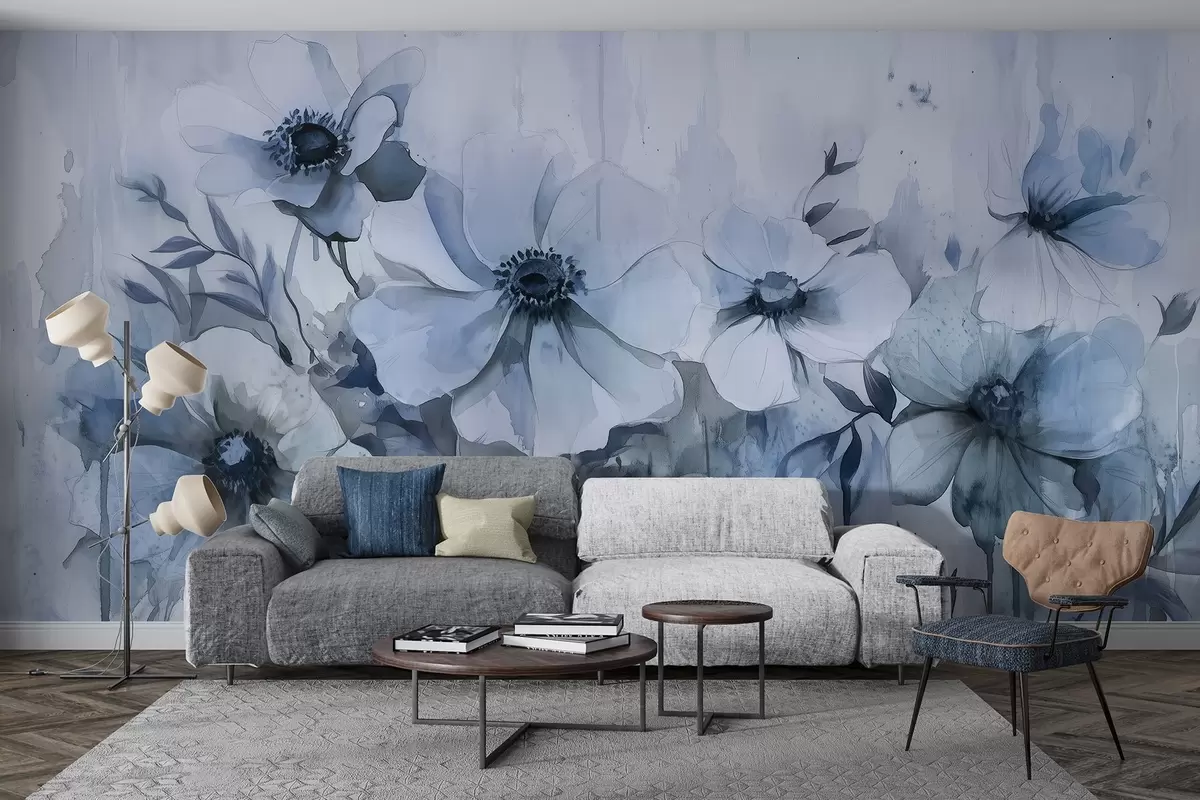 Zidne murale Rustično cvijeće, crtež u stilu akvarela, plave boje br. w02487v1
