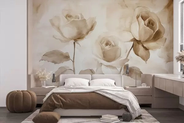 Zidne murale Bež ruže, cvijeće, nježni akvarel crtež, rustikalno, boemski br. w02490