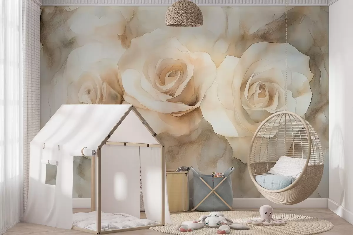 Zidne murale Prekrasne ruže, akvarel stil, bež boje, boem br. w02492