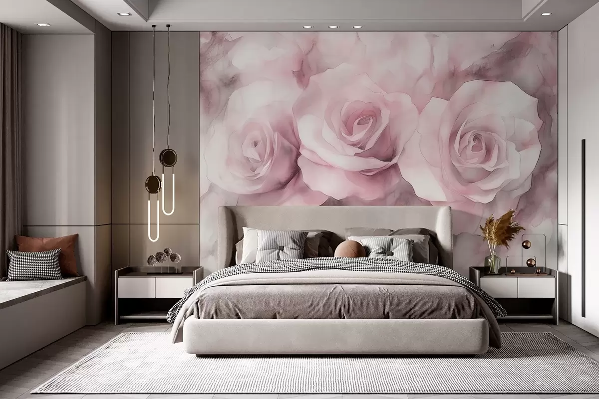 Zidne murale Prekrasne ruže, stil akvarela, ružičaste boje, boemski br. w02492v1