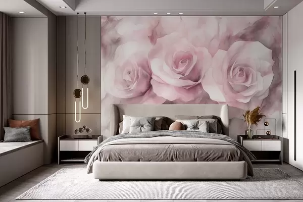 zidne murale Prekrasne ruže, stil akvarela, ružičaste boje, boemski w02492v1
