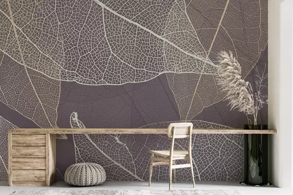 Zidne murale krupni plan lišća s venama u ljubičasto-sivim tonovima br. w02520v3