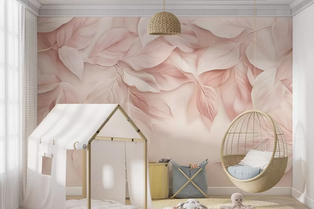 Zidne murale nježno ružičasto lišće za djevojčinu spavaću sobu br. w02549