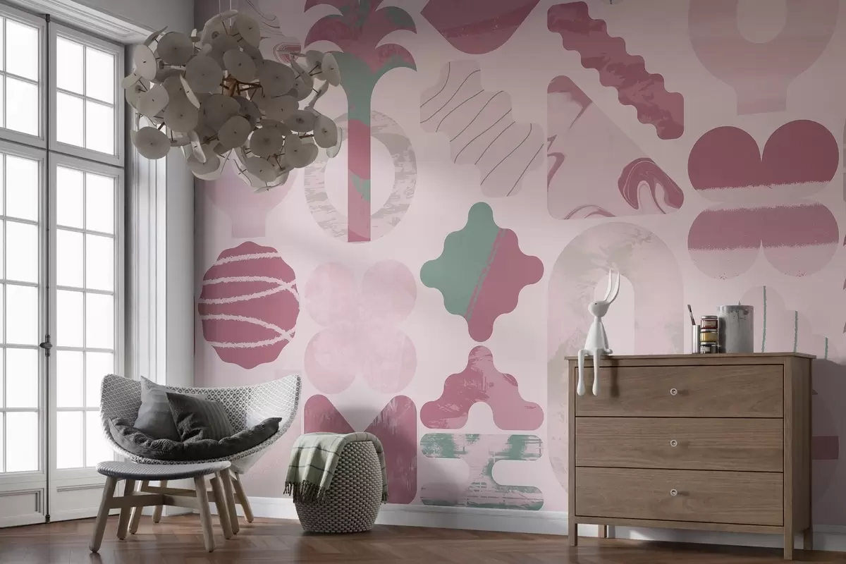 Zidne murale razni zanimljivi oblici, moderna geometrija u roza bojama br. w02550