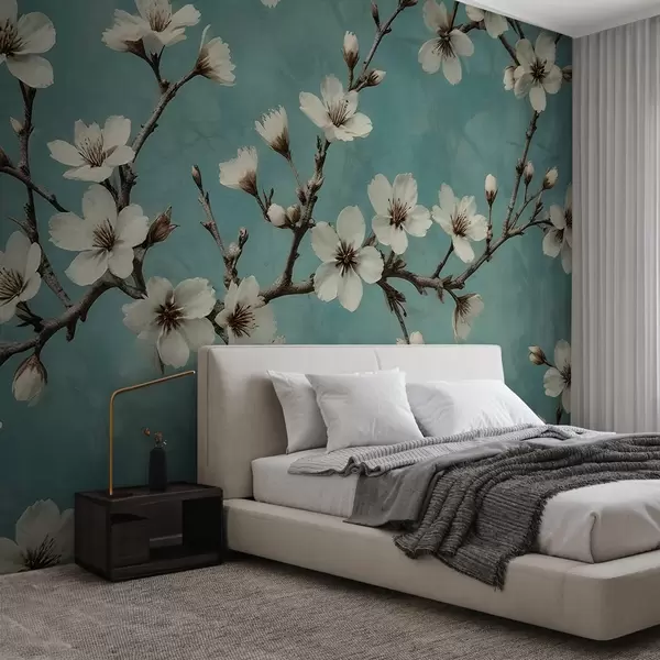 zidne murale Rascvjetale grane na betonskoj pozadini w02610