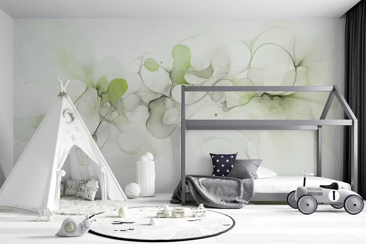 Zidne murale Fluidan umjetnički stil, apstrakcija, nježno zelene boje br. w02745v1