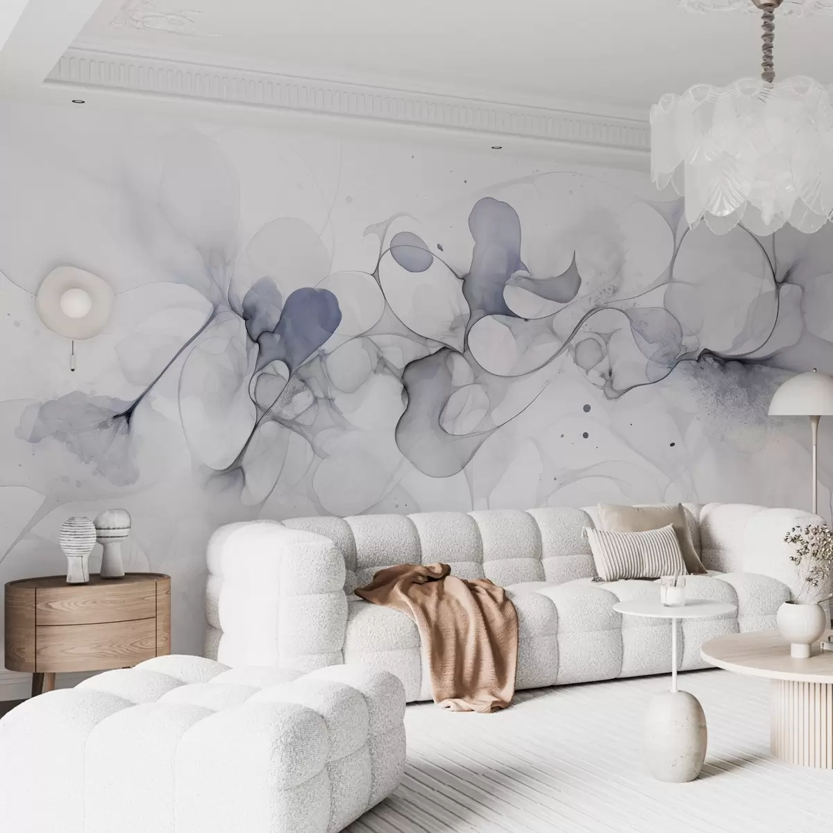 zidne murale Fluidan umjetnički stil, apstrakcija, nježne sive boje w02745v3