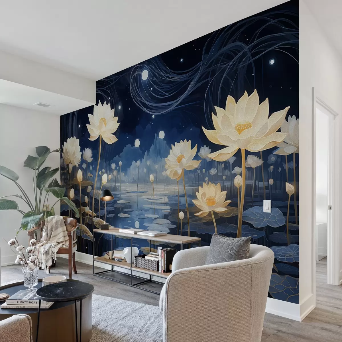 Zidne murale Ulje na platnu lotosi noću br. w02848