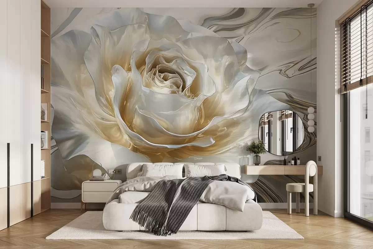Zidne murale Velika biserno bijela ruža u metalik stilu br. w02870