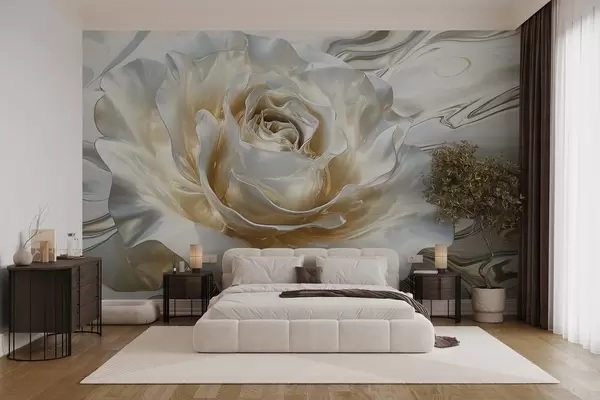 Zidne murale Velika biserno bijela ruža u metalik stilu br. w02870