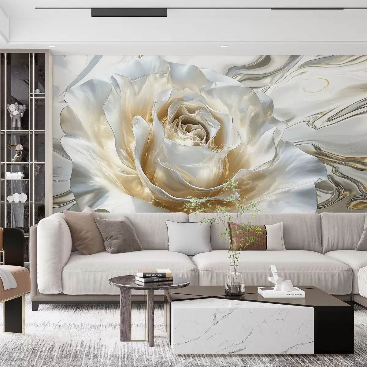 Zidne murale Velika biserno bijela ruža u metalik stilu br. w02870