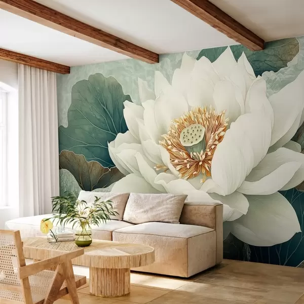 zidne murale Veliki lokvanj na pozadini lišća w02905