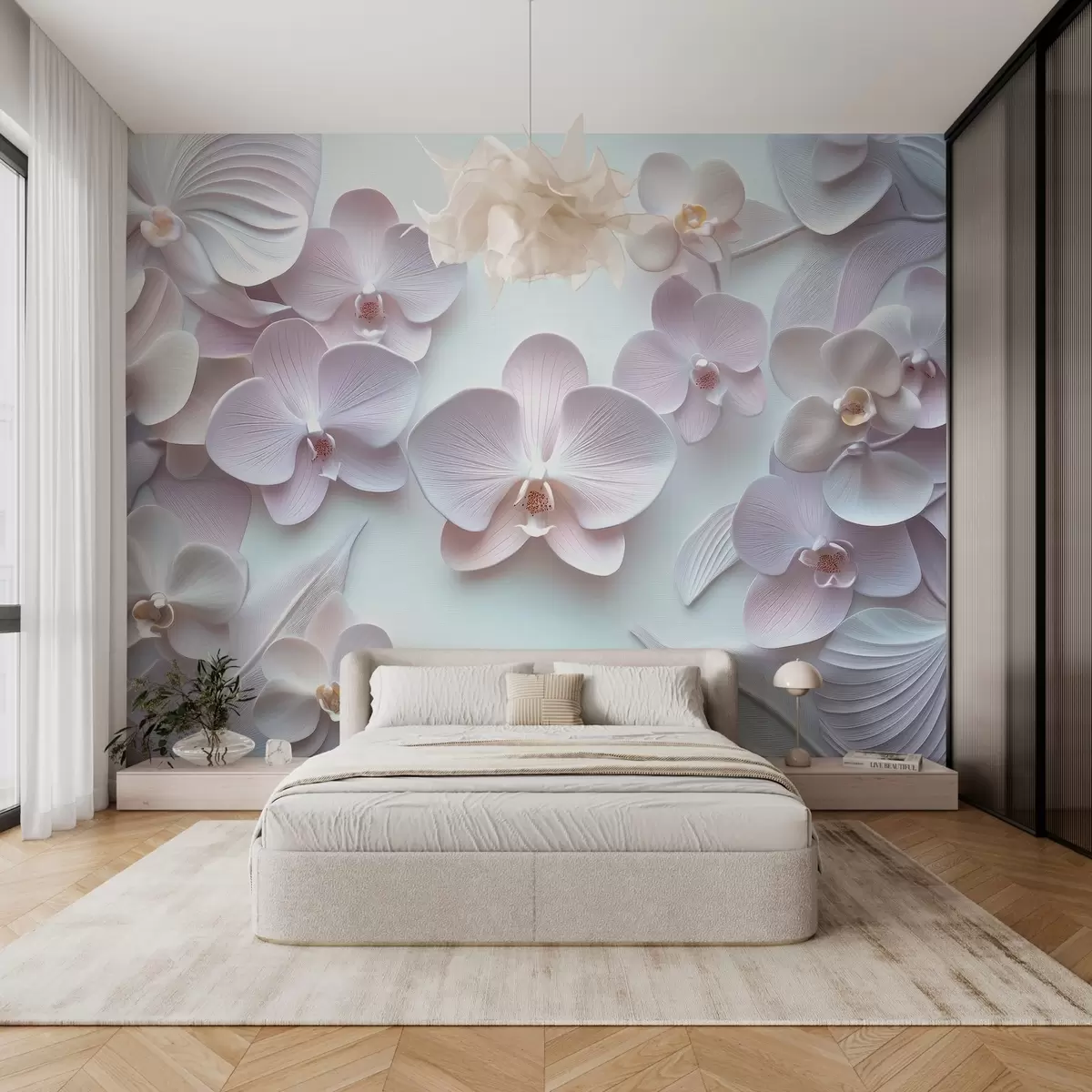 Zidne murale Nježni cvjetovi arhidije u svijetlim bojama s 3D imitacijom br. w02912