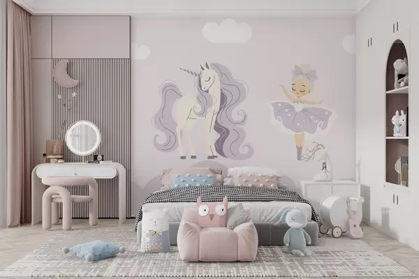 Zidne murale Jednorog i balerina u ružičastim bojama br. w02965v1