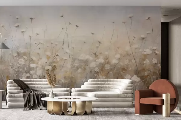 zidne murale Betonski zid u cvijeću u grunge stilu w02972