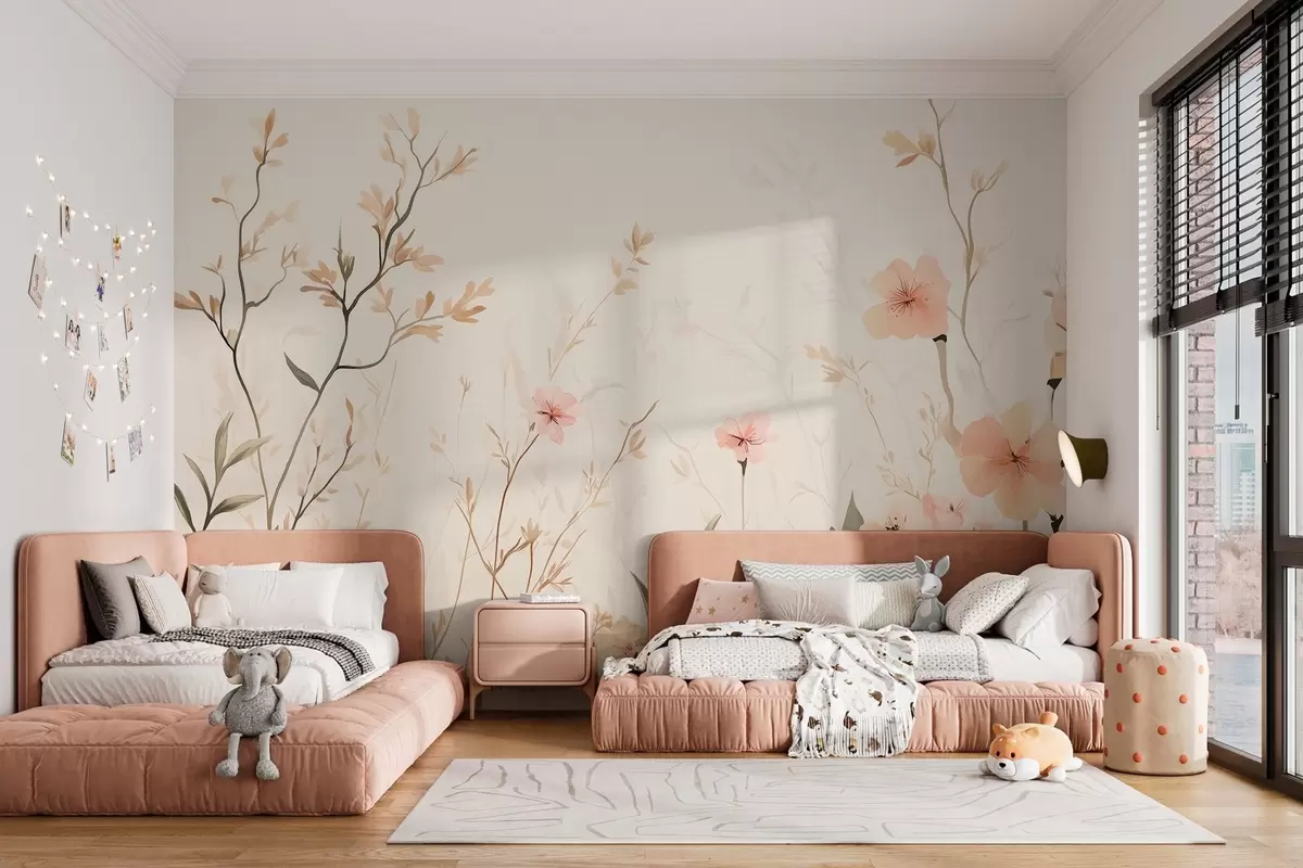 zidne murale poljsko cvijeće s breskvinim cvjetovima w03009