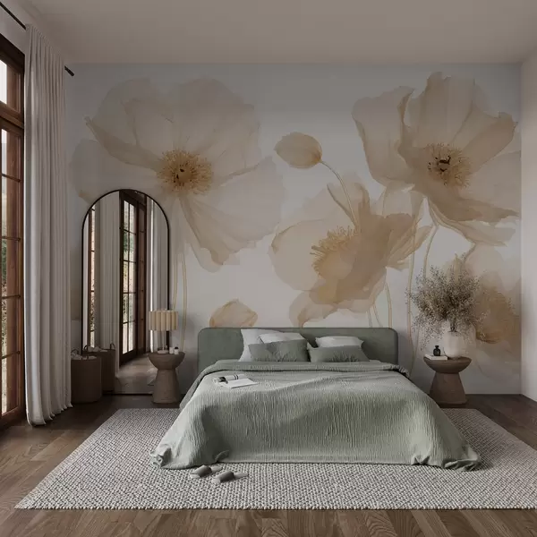 Zidne murale Prozirno cvijeće u nježnim bež-breskvastim tonovima na svijetloj pozadini stvara osjećaj lakoće i elegancije br. w03042