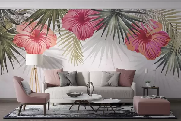 Zidne murale Tropsko lišće i cvijeće odozgo br. w03106