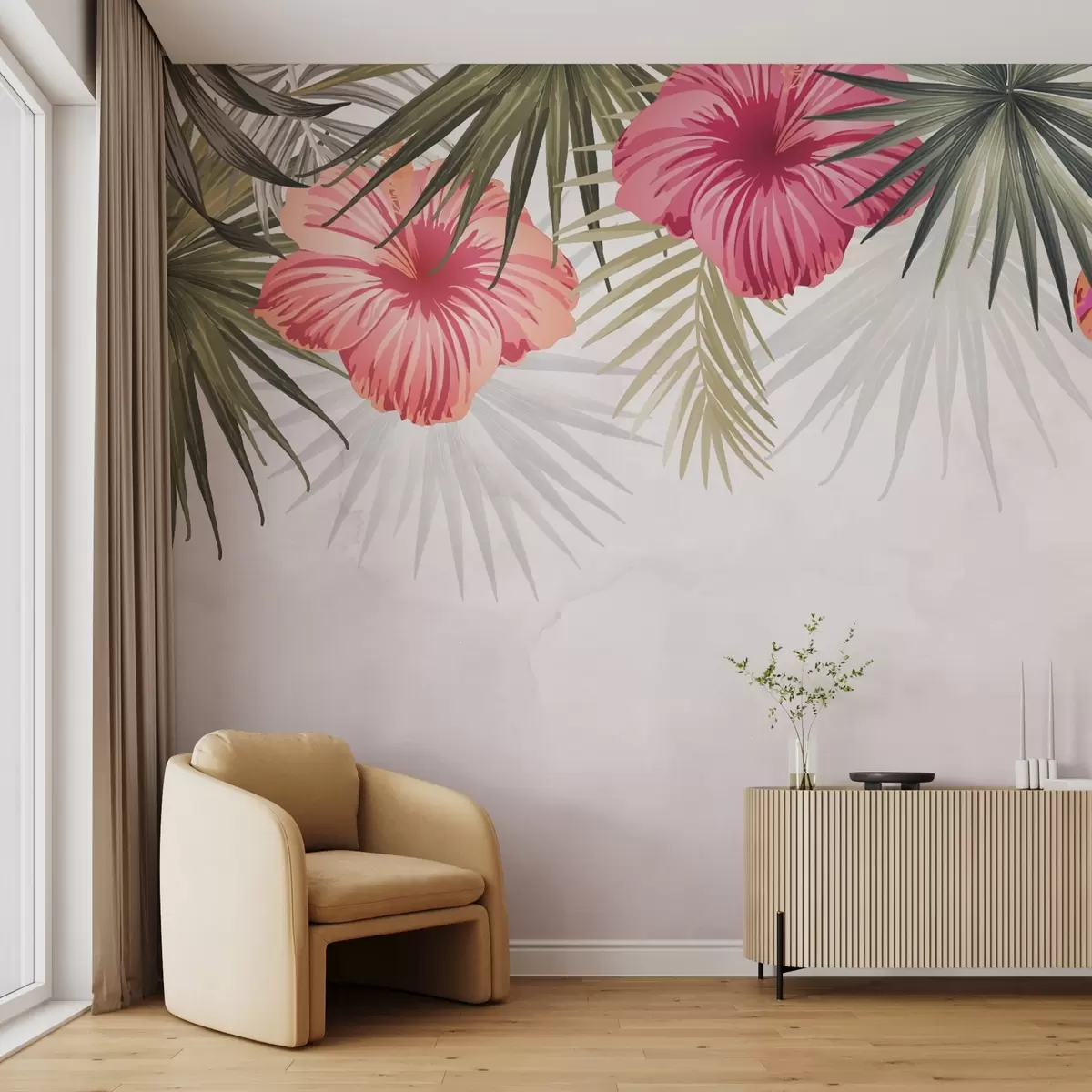 Zidne murale Tropsko lišće i cvijeće odozgo br. w03106