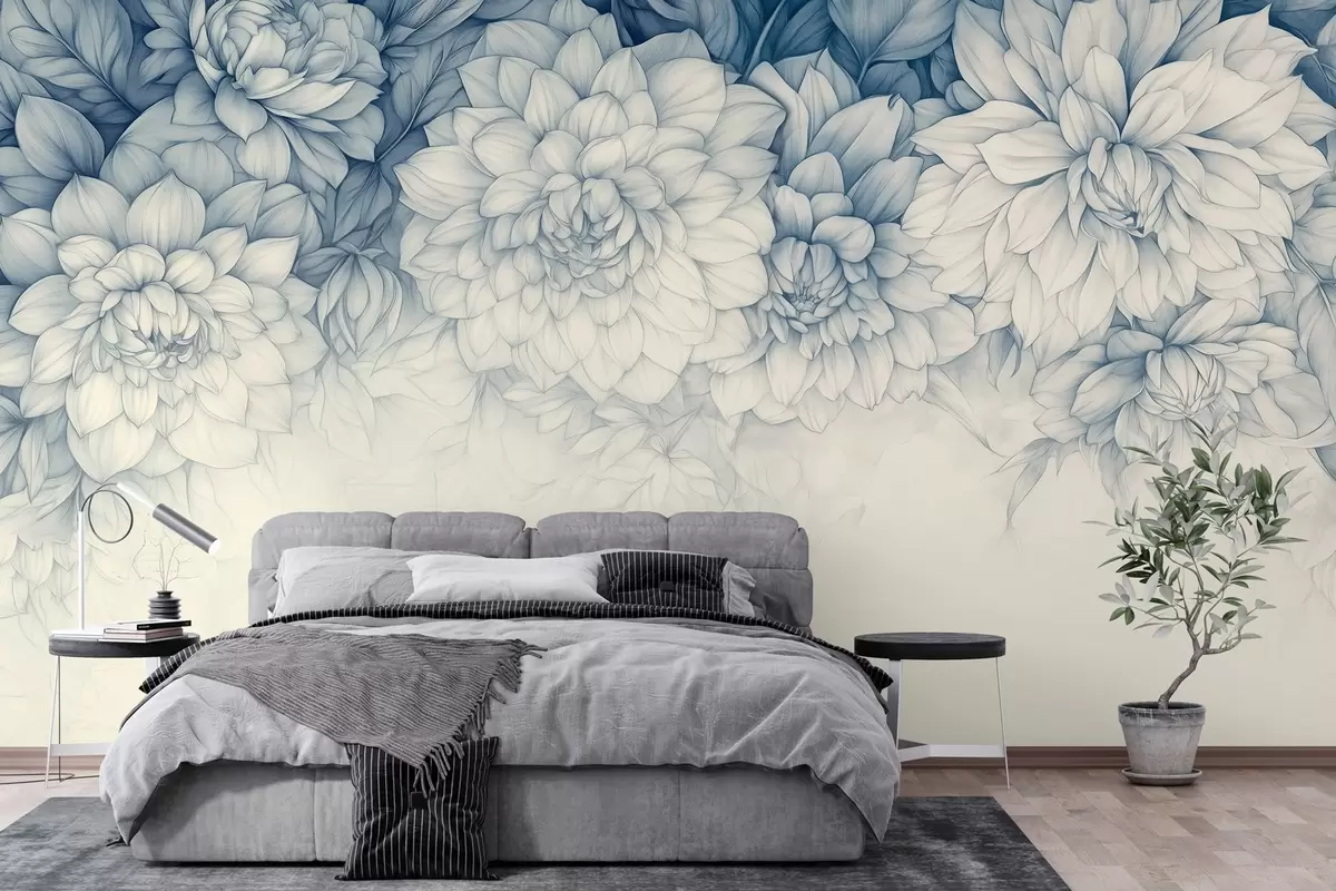 Zidne murale bujne jednobojne krizanteme vise s vrha br. w03110