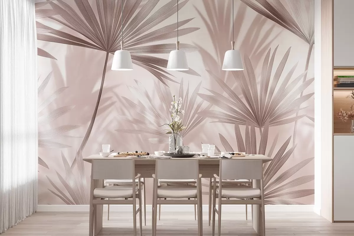 Zidne murale Palmino lišće, cvjetni uzorak, minimalizam, tropske, bež boje br. w03152v3