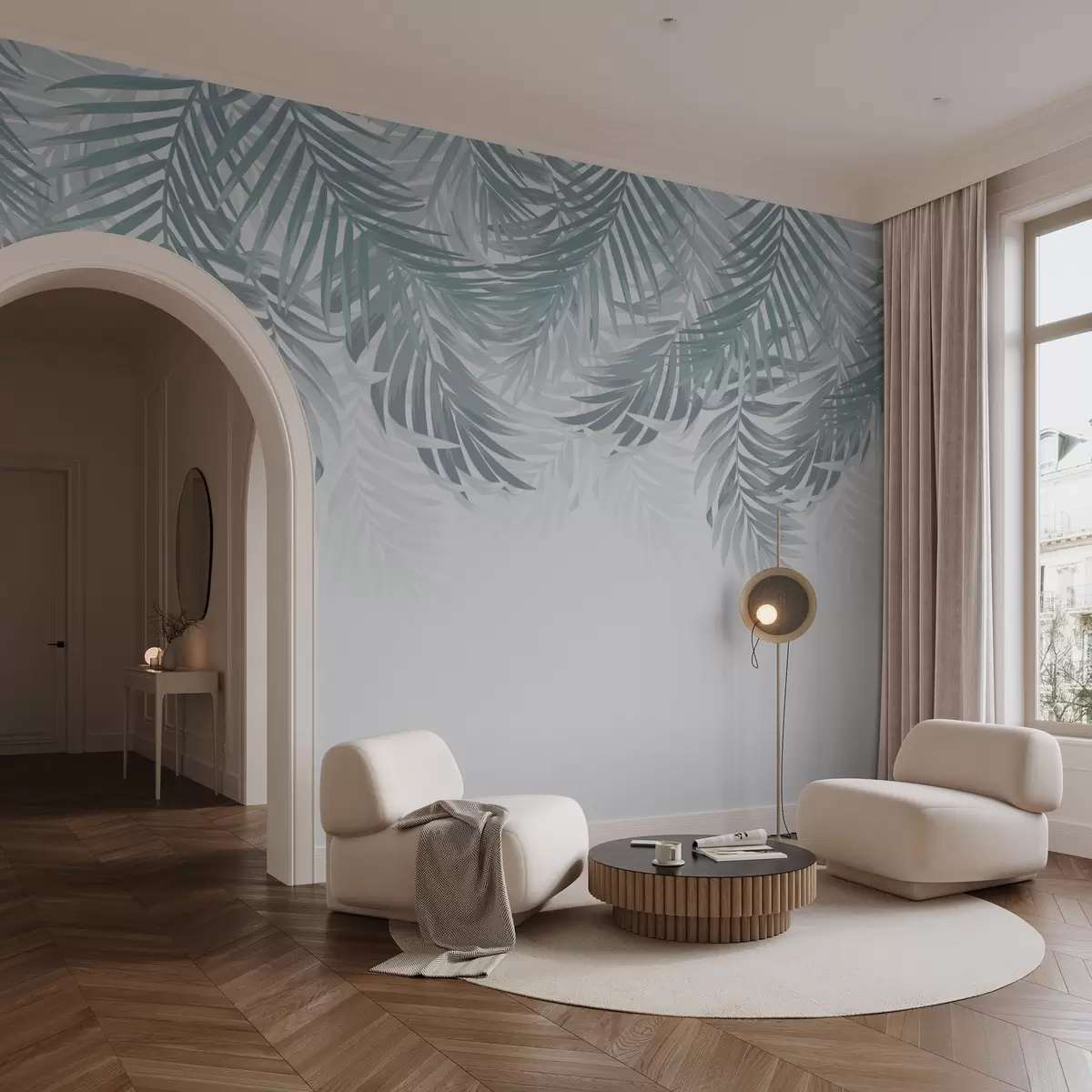 Zidne murale Tirkizno lišće palme odozgo br. w03294v1