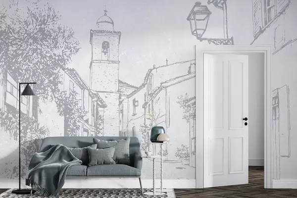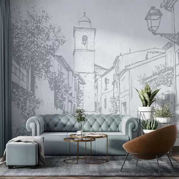 Zidne murale Gradska ulica, lijepa arhitektura, zgrade, Mediteran, plave boje br. w03346v1