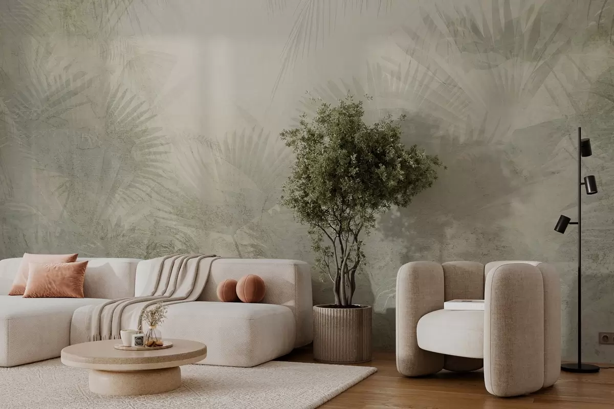 Zidne murale Teksturirana tropska retro tapeta u bež tonovima br. w03399
