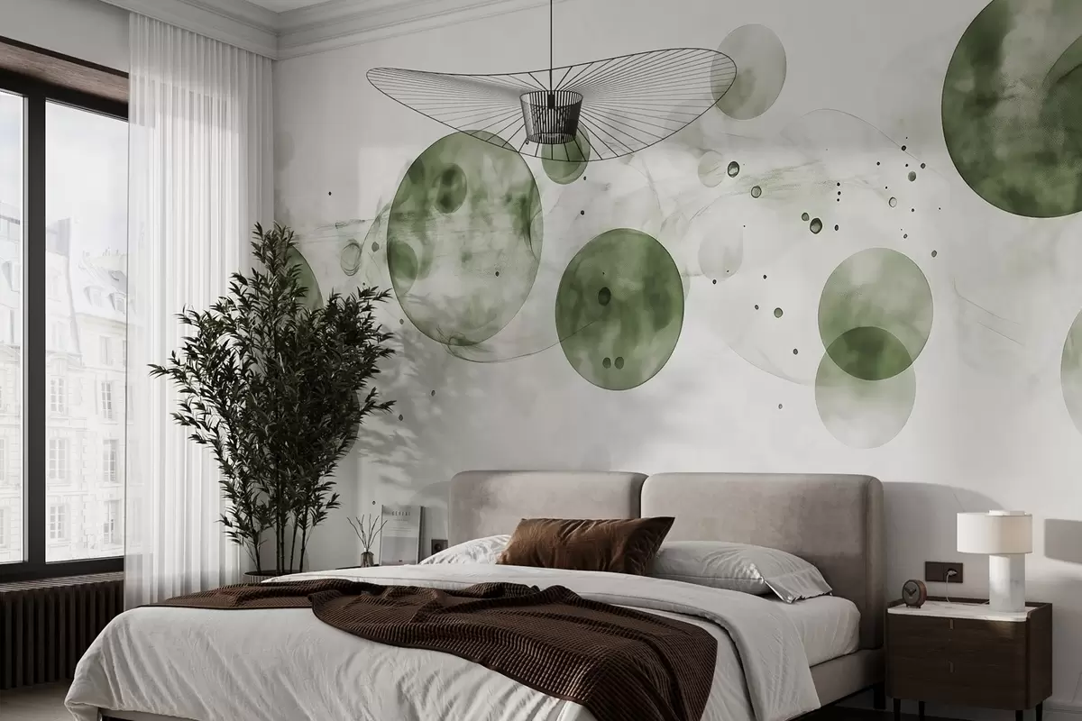 Zidne murale Krugovi u stilu akvarela, apstrakcija, eterična, fluidna umjetnost, zelene boje br. w03405v1