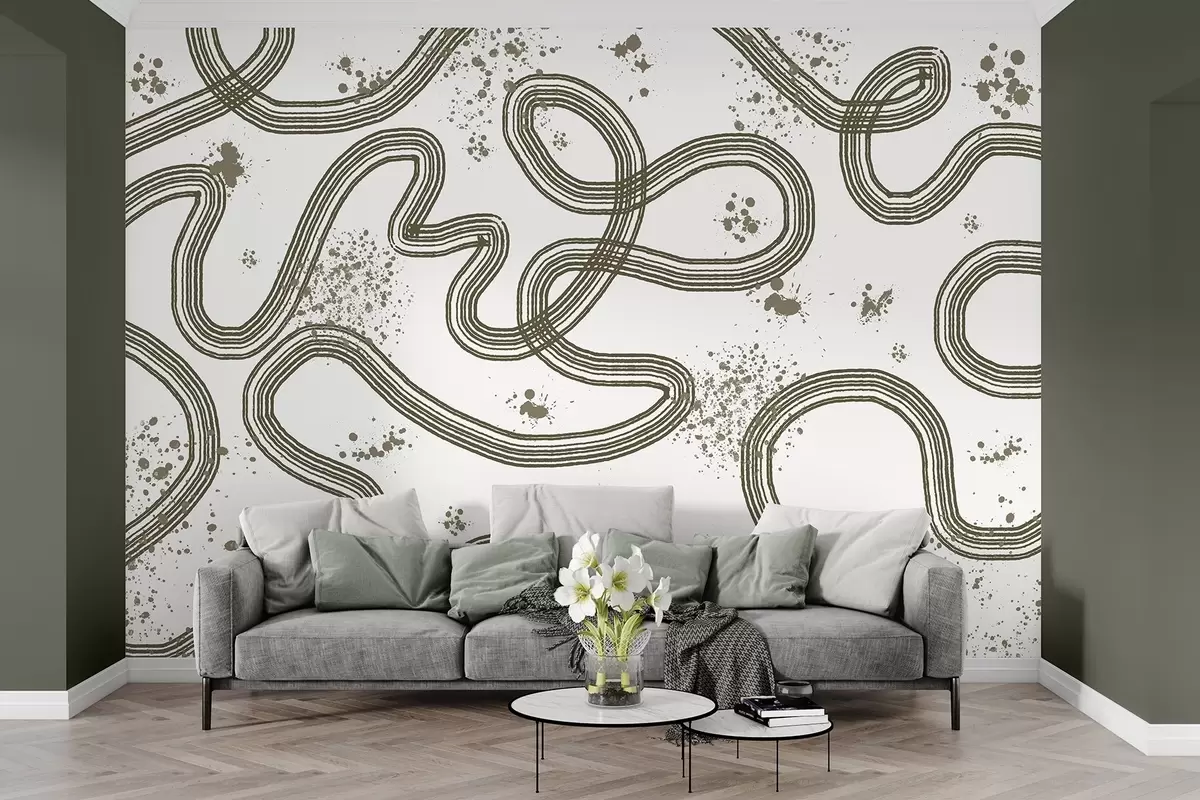 Zidne murale Linijski crtež, mrlje boje, minimalizam, maslinasta boja br. w03408