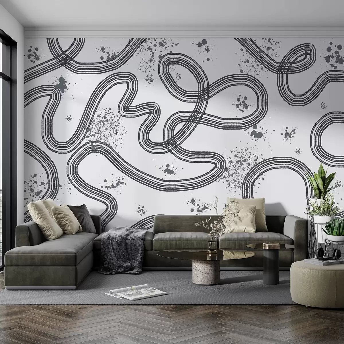Zidne murale Linijski crtež, mrlje boje, minimalizam, siva boja br. w03408v2