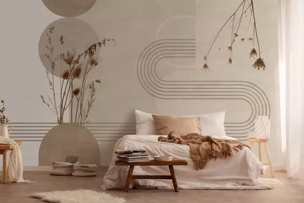 Zidne murale elegantna geometrija i suho cvijeće u bež tonovima br. w03449