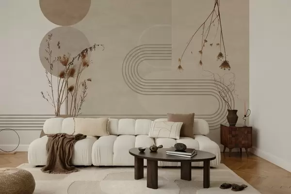 zidne murale elegantna geometrija i suho cvijeće u bež tonovima w03449