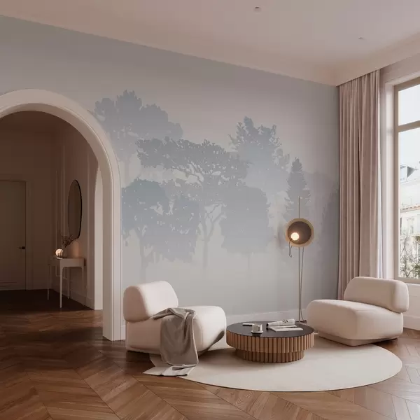 Zidne murale siluete drveća u izmaglici magle br. w03451