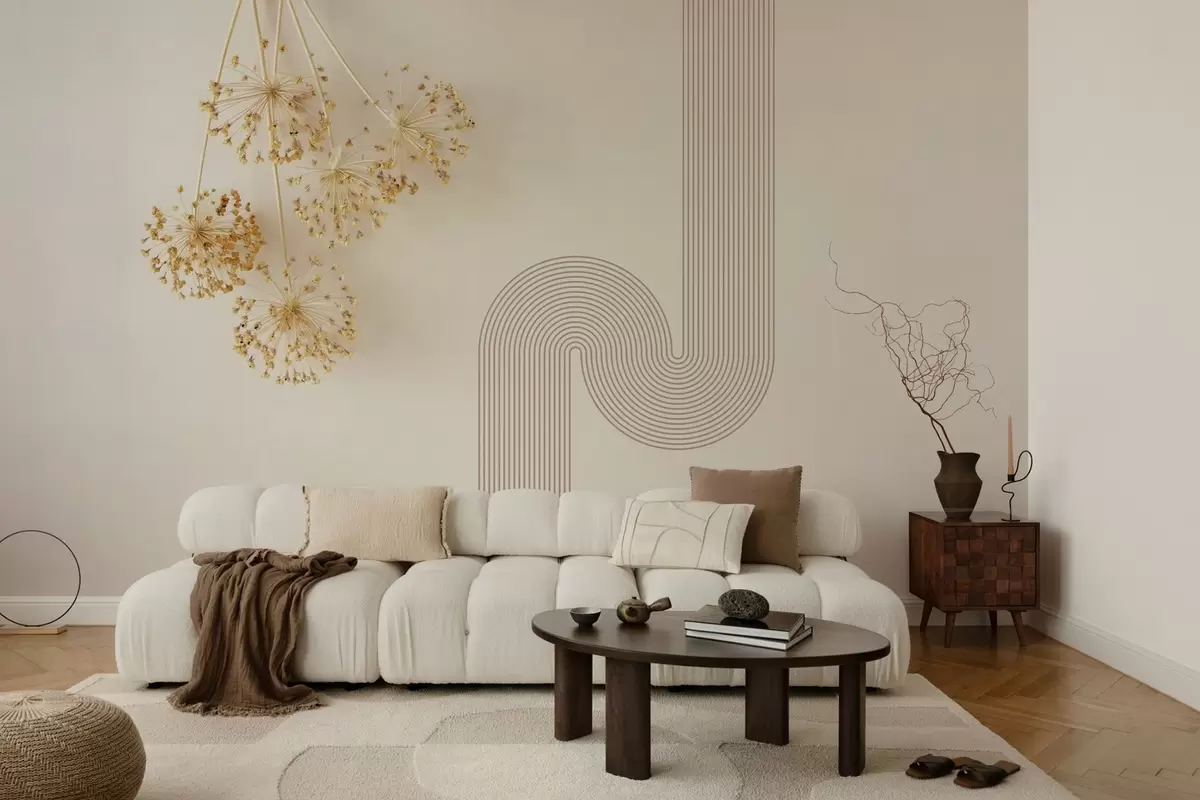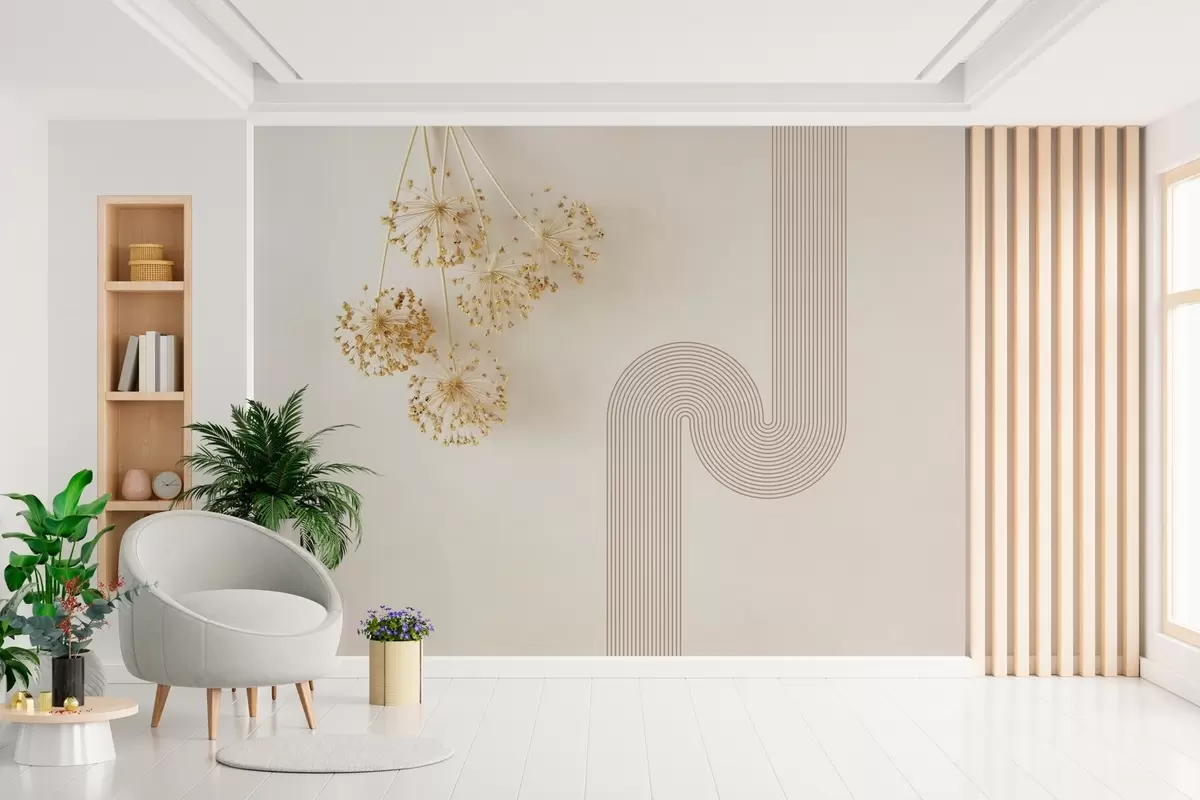 Zidne murale elegantno suho cvijeće i linije u bež tonovima br. w03455