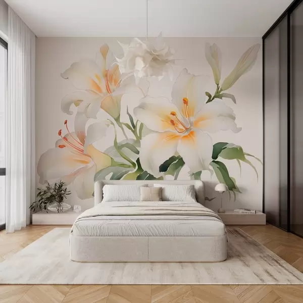 Zidne murale Bijeli ljiljani imitacija akvarela br. w03460