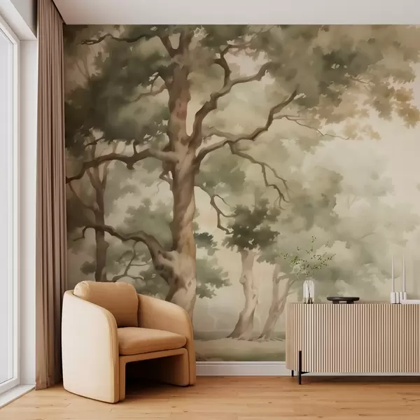 Zidne murale Imitacija hrastovog gaja zamućenog akvarela br. w03465