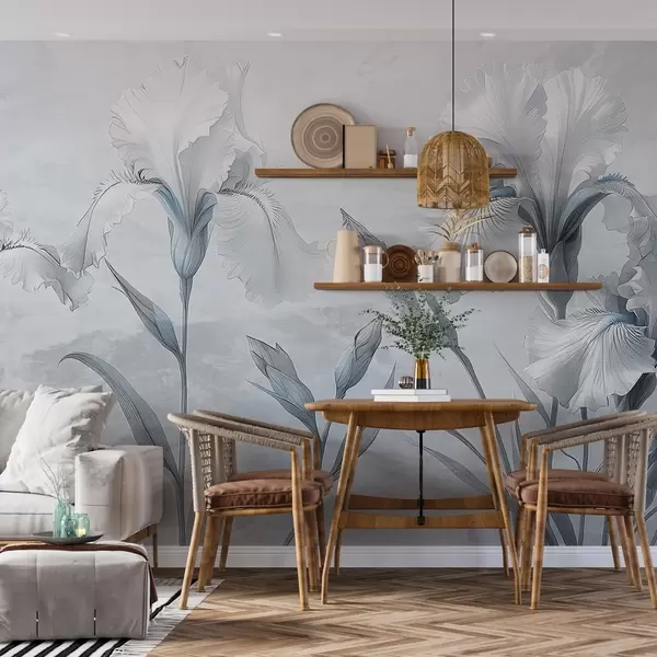 Zidne murale Nježni crteži perunika na zidu br. w03556v2