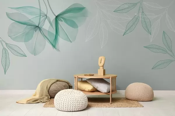 Zidne murale nježno prozirno cvijeće i lišće u zelenim tonovima br. w03616v1