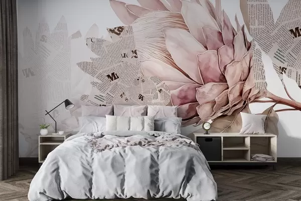 Zidne murale Protea cvijeće, novinska umjetnost, cvjetne, tropske, pastelne bež boje br. w03667v4