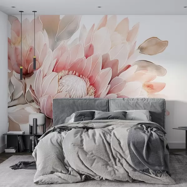 Zidne murale Prekrasno cvijeće protee, crtani crtež, tropske, prirodne boje br. w03669