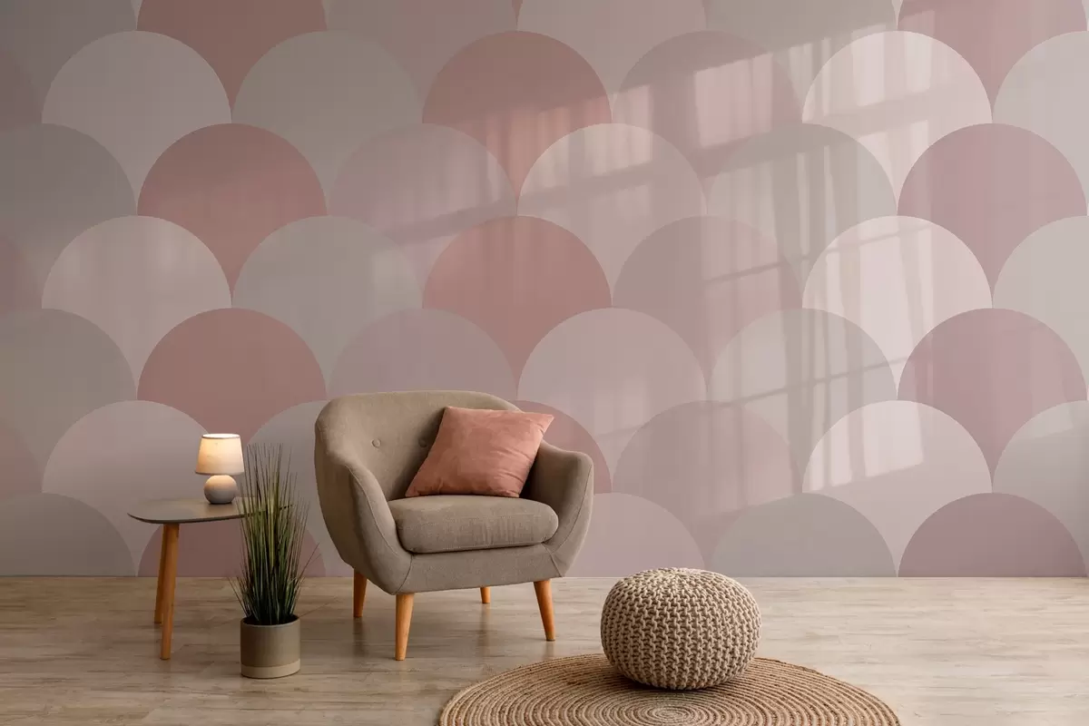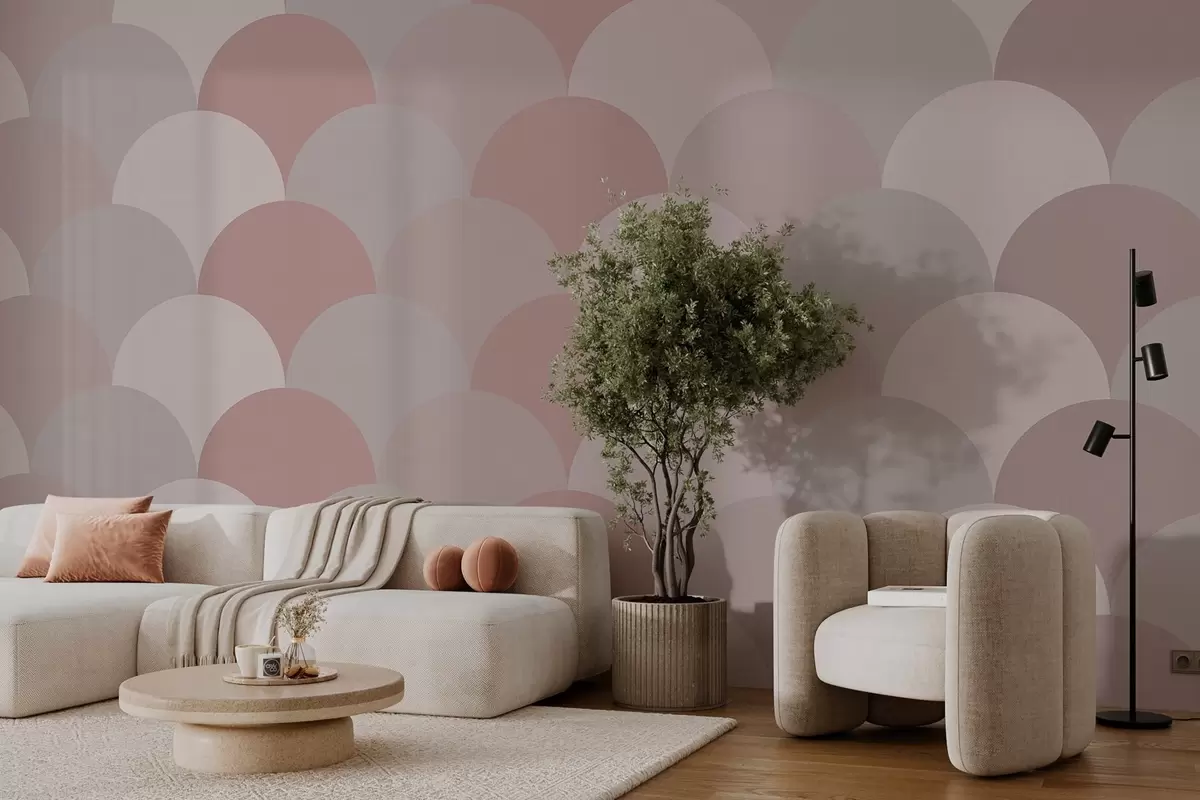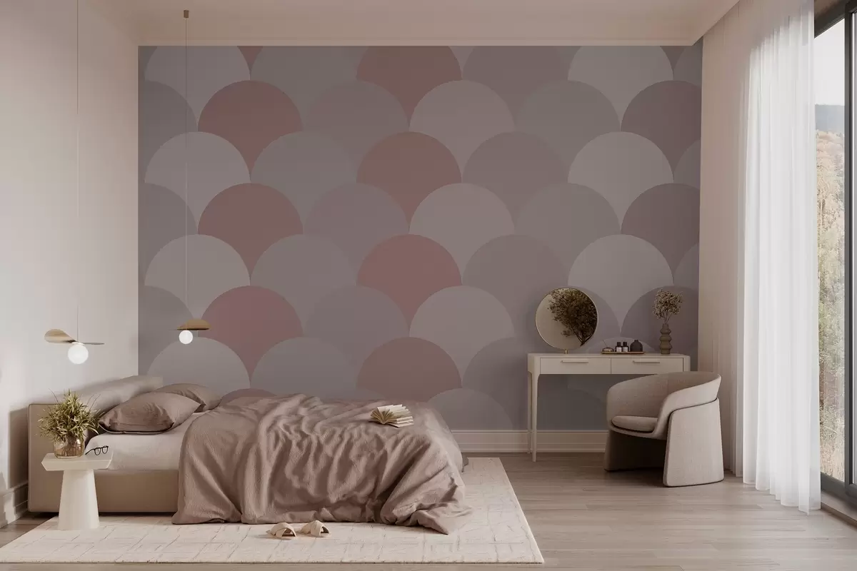 Zidne murale elegantne skale u nijansama prašnjavo ružičasto sive i bež br. w03722